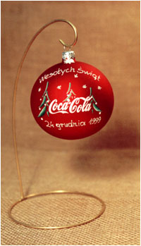 Oferujemy bombki szklane: gładkie, matowe, formowane, dekorowane, witrażowe i tzw. hologram - matowe wewnątrz. Maksymalne wymiary 15 cm. Matowe bombki 12 cm dekorowane bogatym stroikiem. Na zamówienie ręcznie malujemy napisy logo firm lub metodą